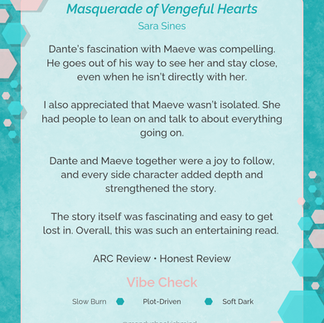Overall, this was such an entertaining read. Dante and Maeve together were a joy to follow, and every side character felt purposeful and meaningful, adding depth to the world and strengthening the story as a whole. I received this as an ARC and am leaving this honest review voluntarily.